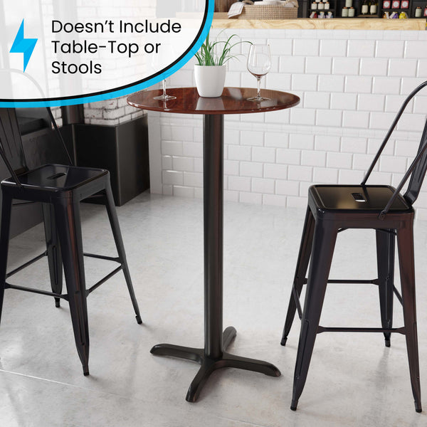 Get the look you want in your restaurant, break room or cafeteria with table bases and coordinating table tops. This bar height base features cast iron construction designed for commercial use so you can be assured it will withstand the daily rigors in the hospitality industry. The powder coated finish of the base easily matches any bar or restaurant decor. Whether you are just starting your business or upgrading your furniture, invest wisely with this table base designed to withstand years of heavy use.