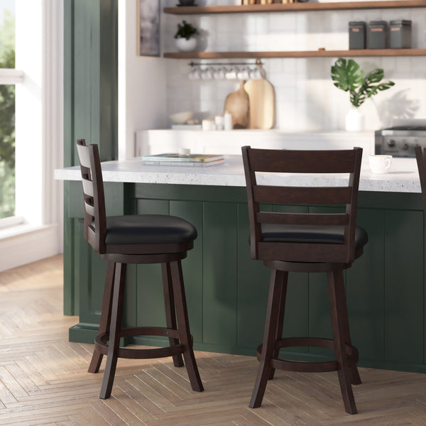 - Classic Style Solid Wood Ladderback Swivel Counter Height Stool