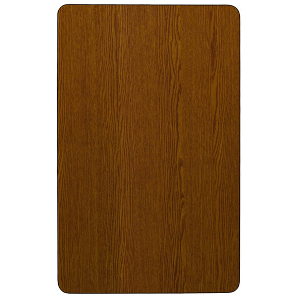 The double-sided high pressure laminate top allows you to choose your color of choice and then affix the standard height legs to the top. The 24"W x 60"L table top is stain and warp resistant with a backing sheet to prevent moisture absorption while the black edge band seals the edges for long lasting usage. An attractive black powder coated finish protects the upper legs from scratches and height adjustable chrome lower legs give you the flexibility to raise or lower the table a full 9" in 1" increments. Self-leveling nylon floor glides keep the table from wobbling and protect your floor by sliding smoothly when you need to move it.