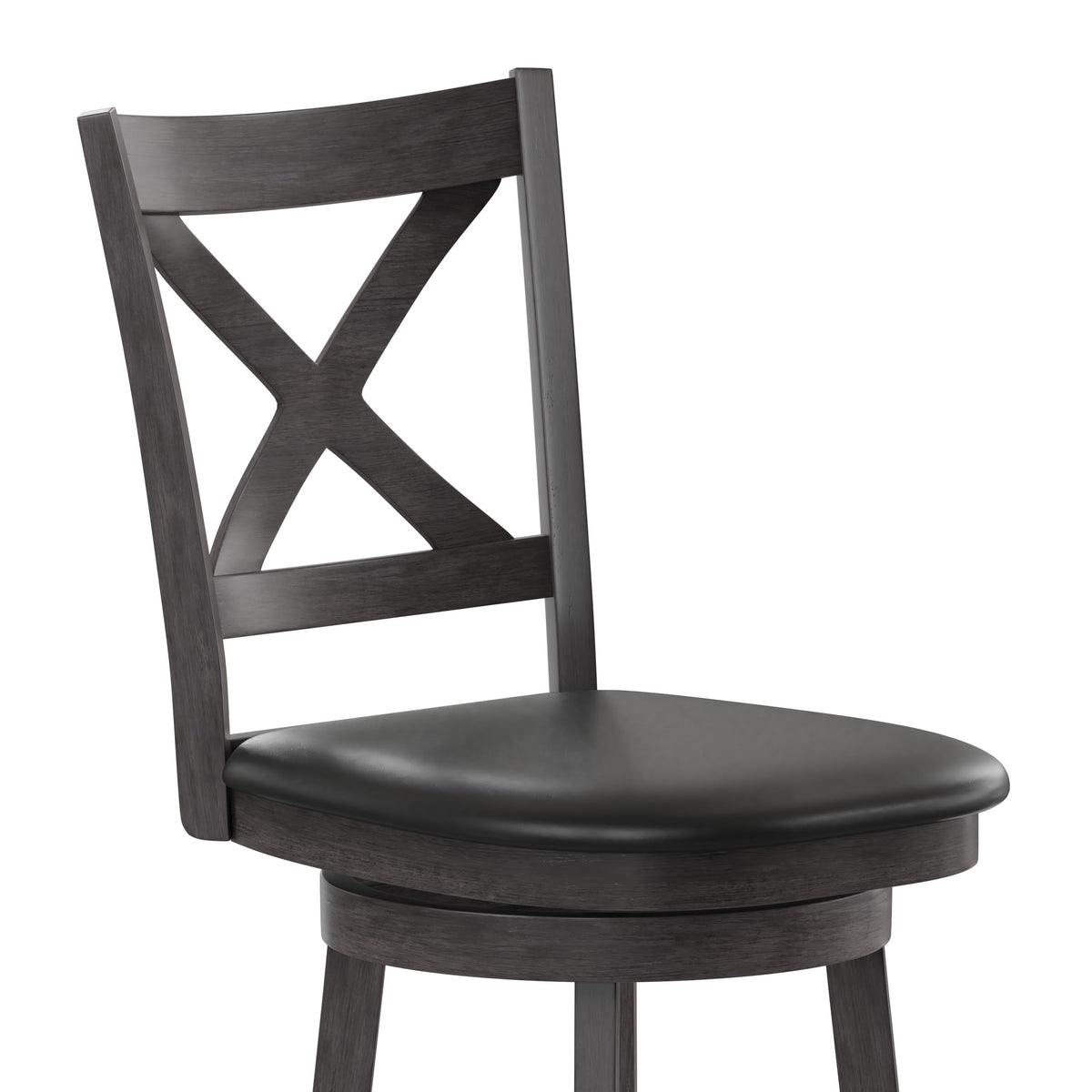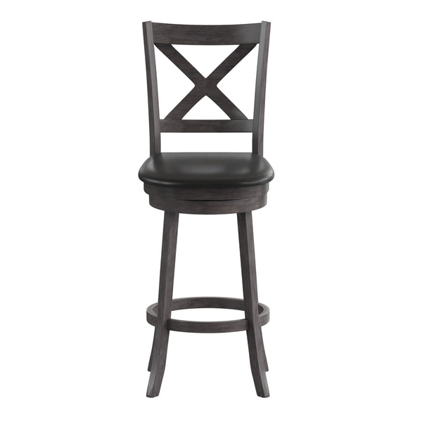 Upgrade the look of our kitchen island, dining room, or provide extra seating options with this classic wood bar height stool that is a welcome addition to any living space. The richly hued wood grain look, available in 2 finishes, creates a warm, inviting ambiance. Constructed of solid wood, boasting 360° swivel, and an integrated footrest for additional comfort, this chair provides a comfortable and stable seating experience.