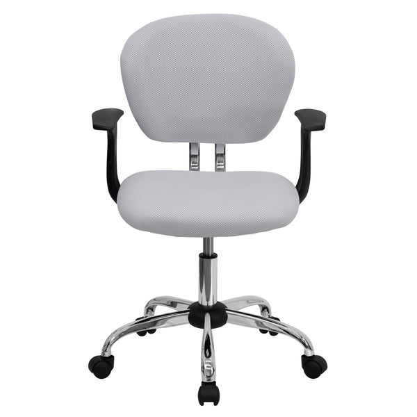 task chairs offer modern seating for your business or home office. This comfy mid-back office chair supports your mid-to-upper back region. The swivel seat is padded with 2" of foam and covered with upholstery. Raise and lower the seat using the pneumatic seat height adjustment lever, conveniently located below the seat. The heavy-duty, chrome base with dual wheel casters makes it easy to roll across the floor.